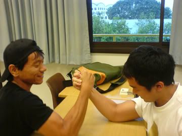Random photo: My 2 guy classmates arm wrestling while the teacher was outside talking to another student. -.-